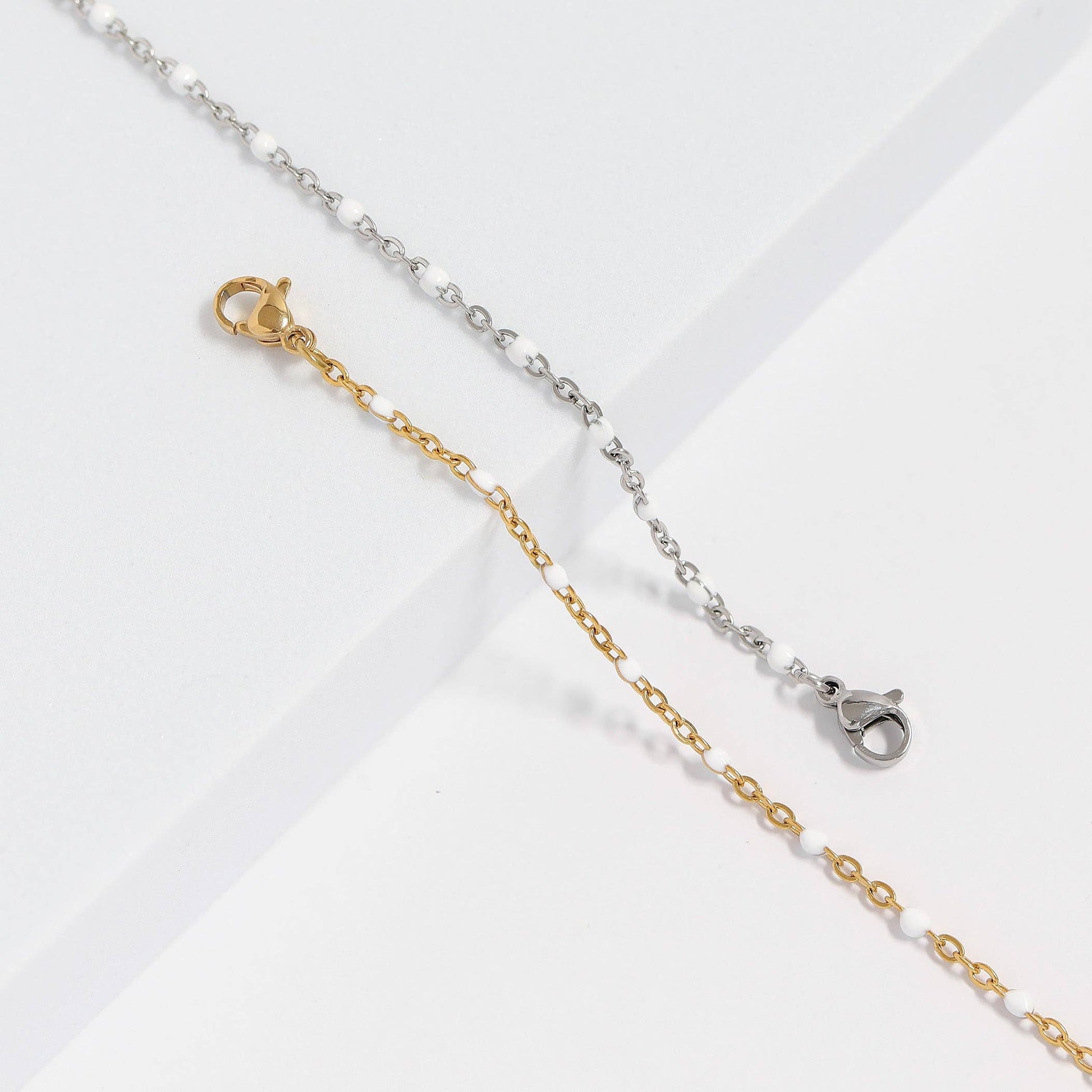 18K Gold PVD Stainless Steel White Confetti Chain Bracelet: Stainless