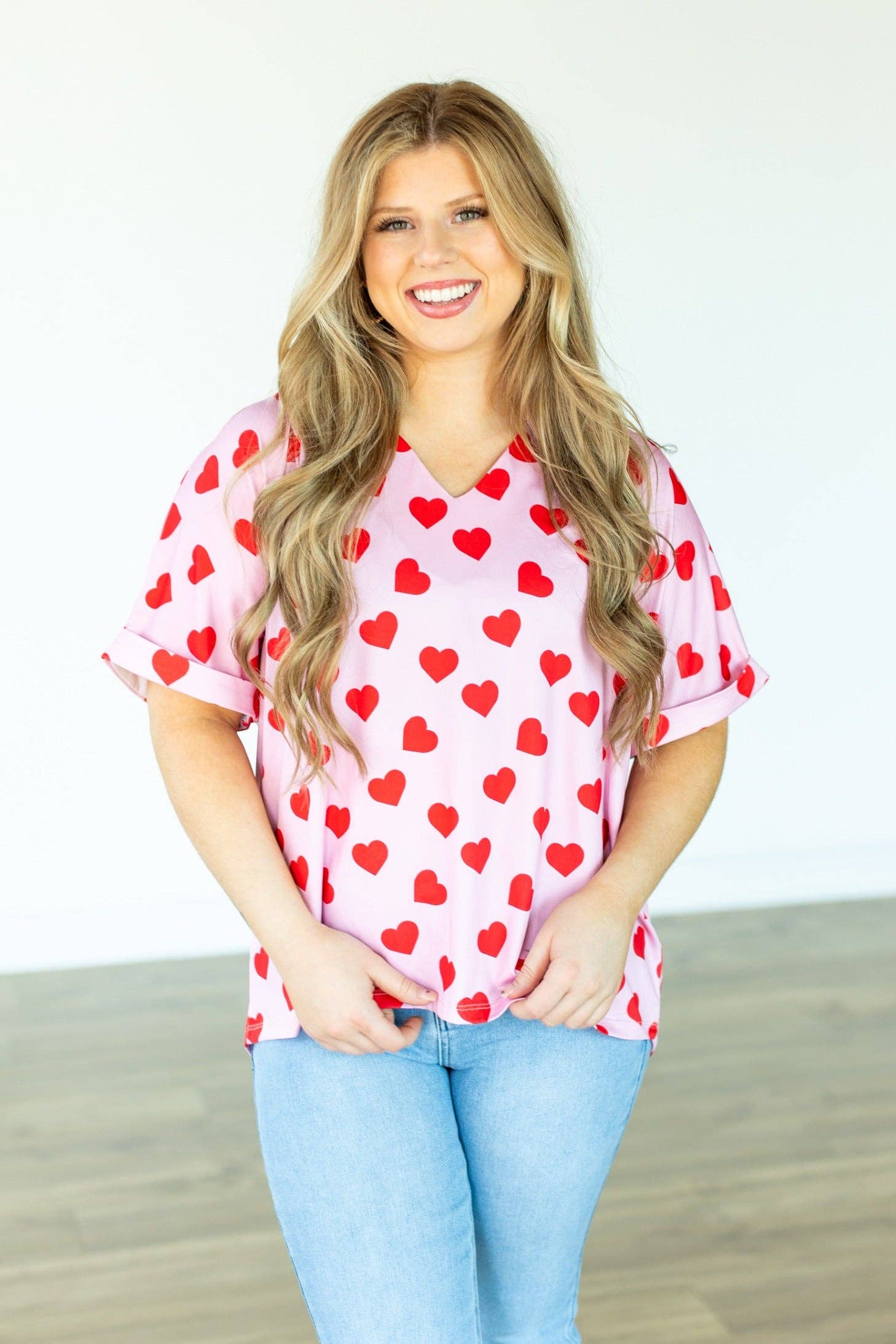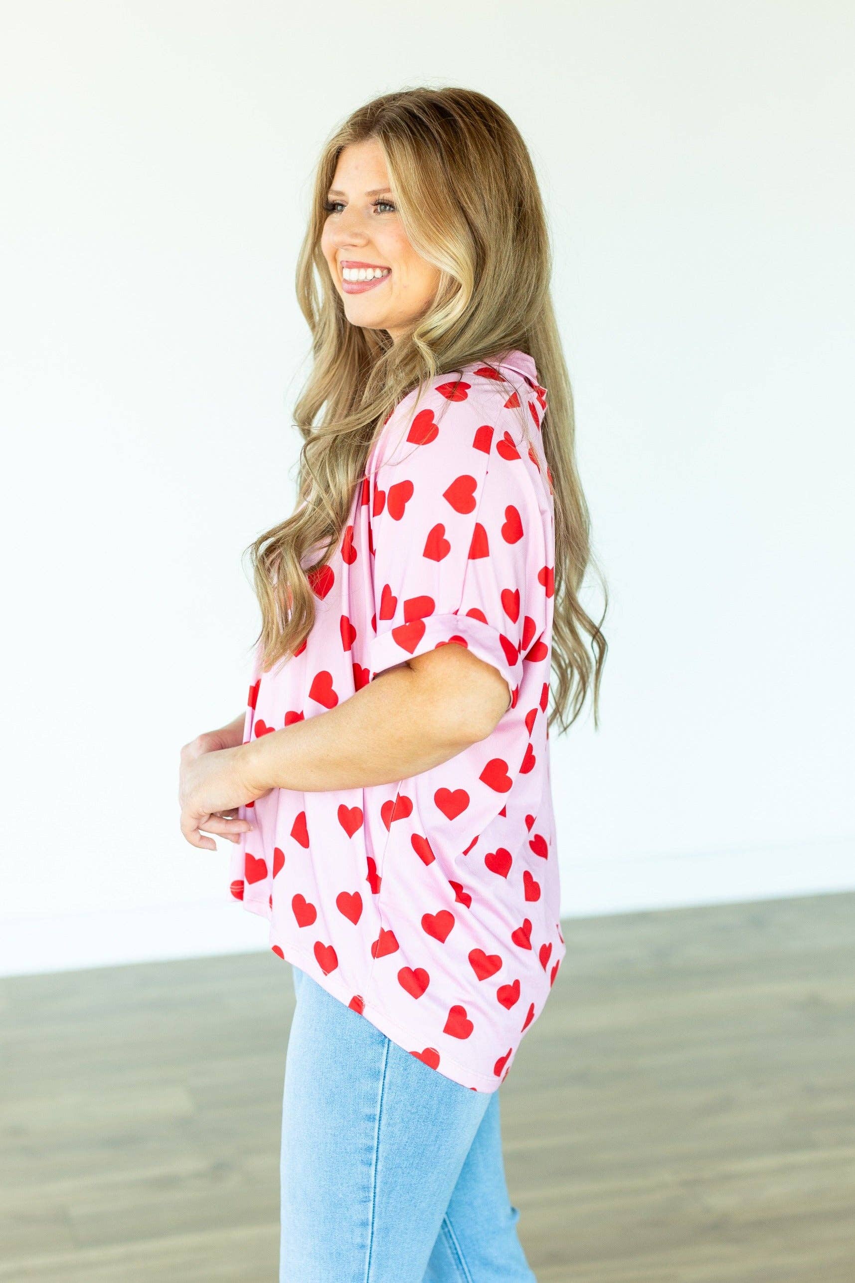 Cara Collared Top, Heart Print: Pink / XS