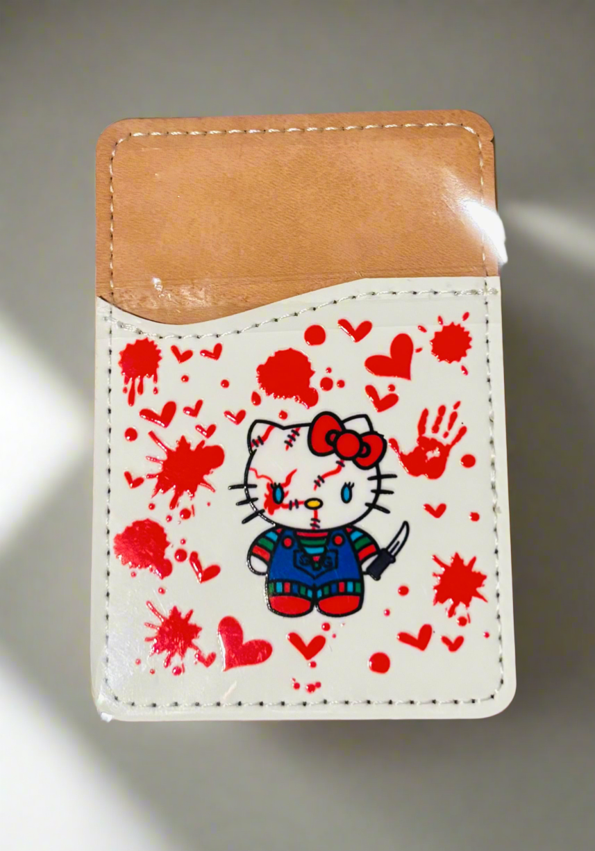 A phone wallet with a Halloween theme is available for attaching credit cards to the back.