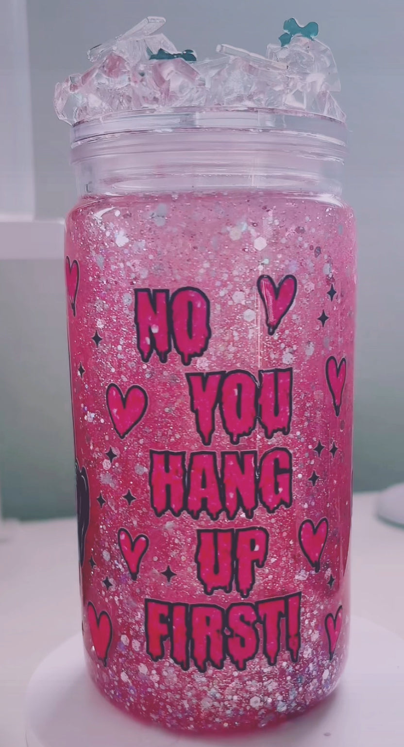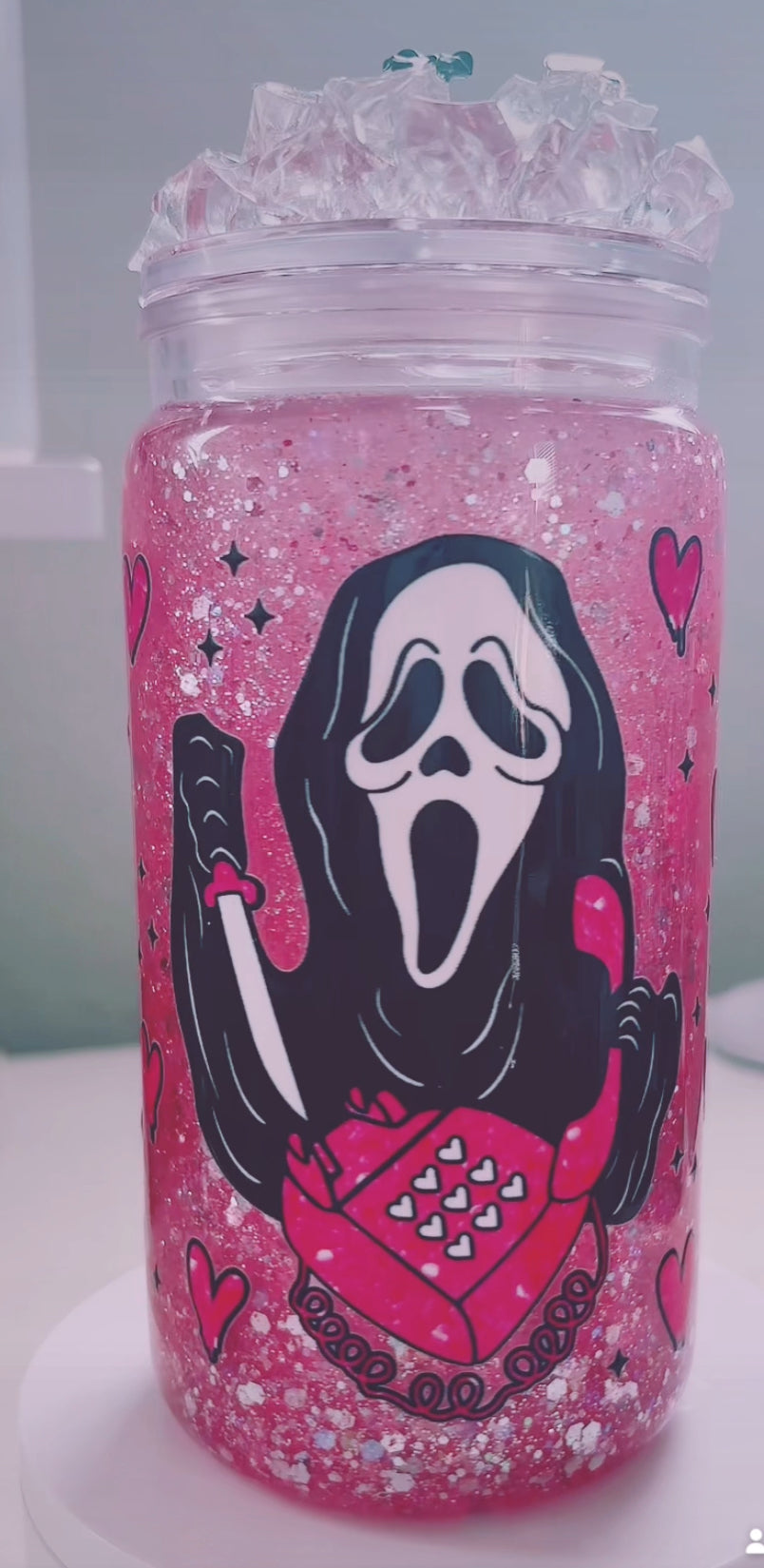 Cute premade scary snowglobe cup – 16oz with lid and straw included!